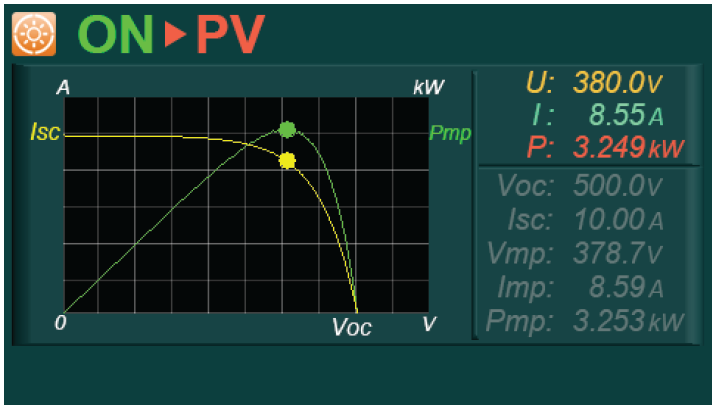 Oscilloscope mode displays the simulated curve of the photovoltaic array in real time